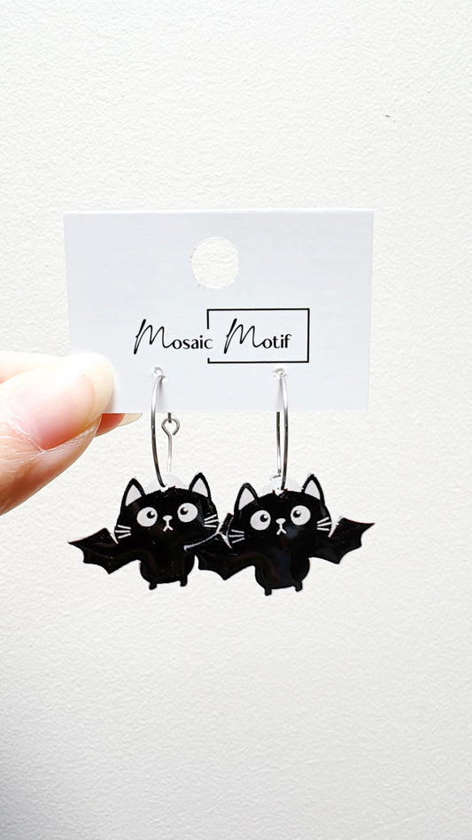 Halloween hoop earrings - Cat mini Bat