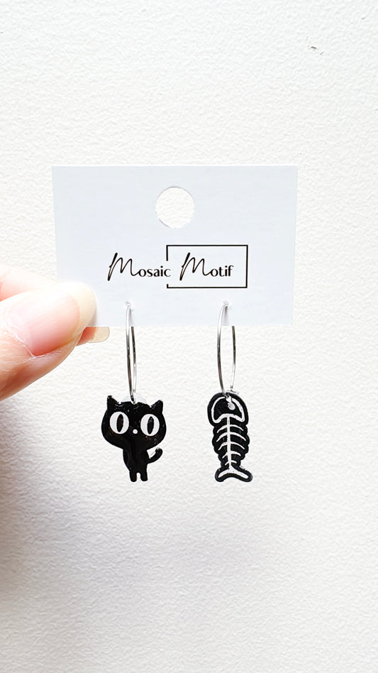 Halloween hoop earrings - Black & White cat