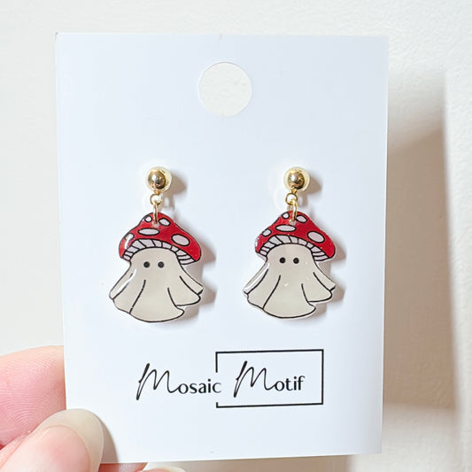 Halloween dangle earrings - Mushroom boo