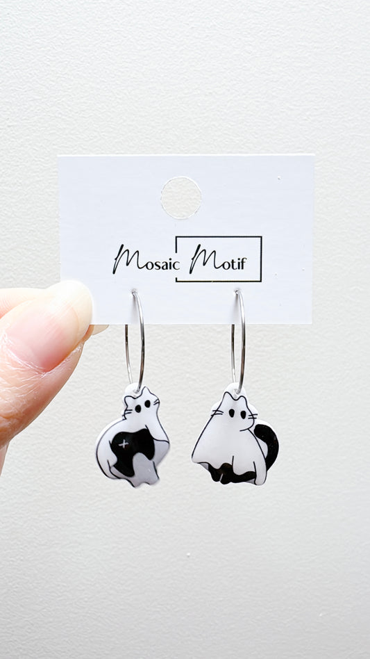 Halloween hoop earrings - Ghost cat