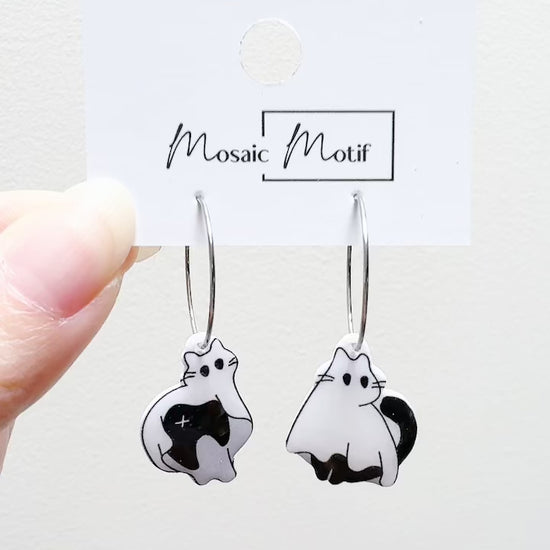 Halloween hoop earrings - Ghost cat