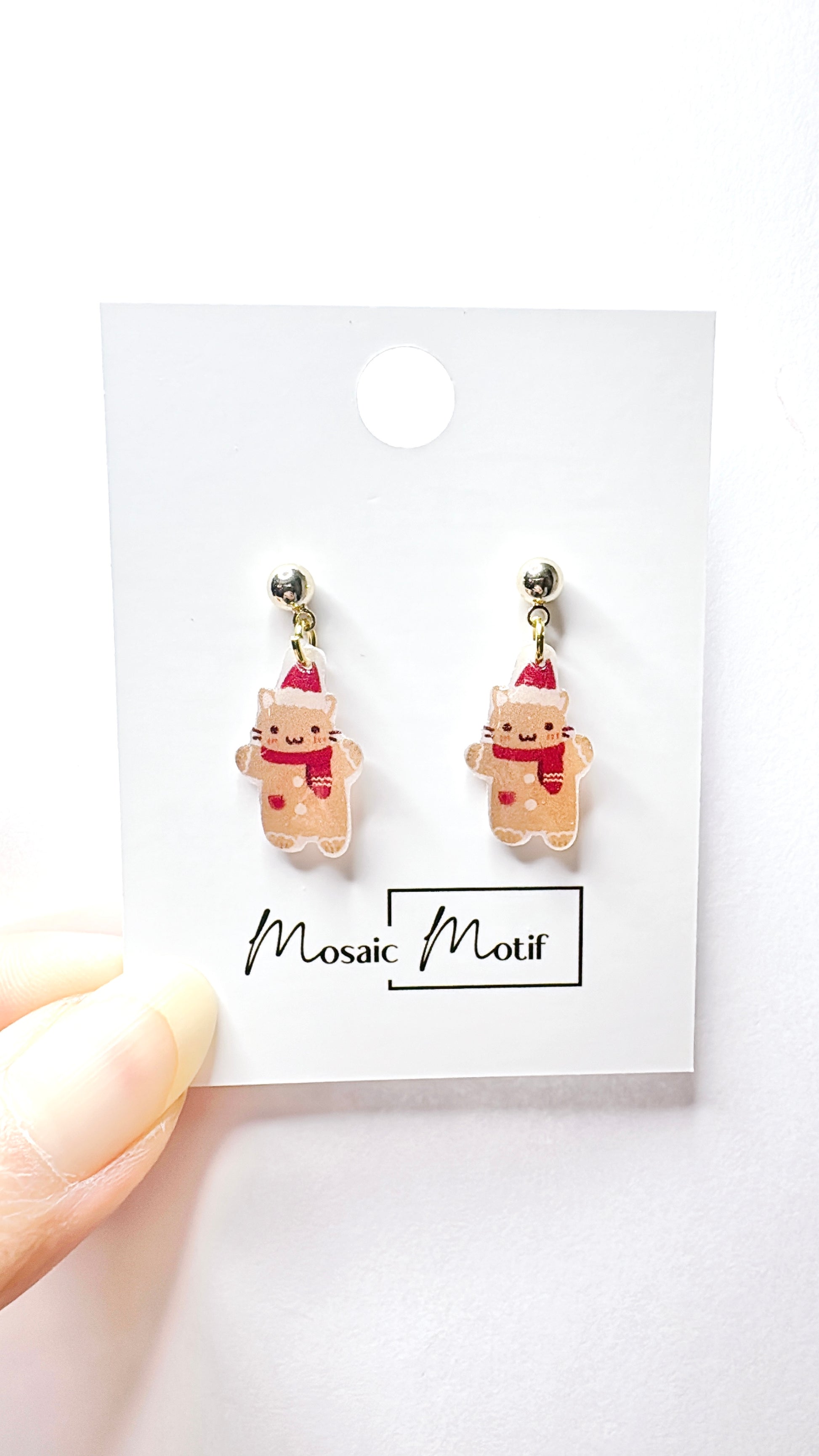 Xmas Christmas dangle earrings - Gingerbread Meow